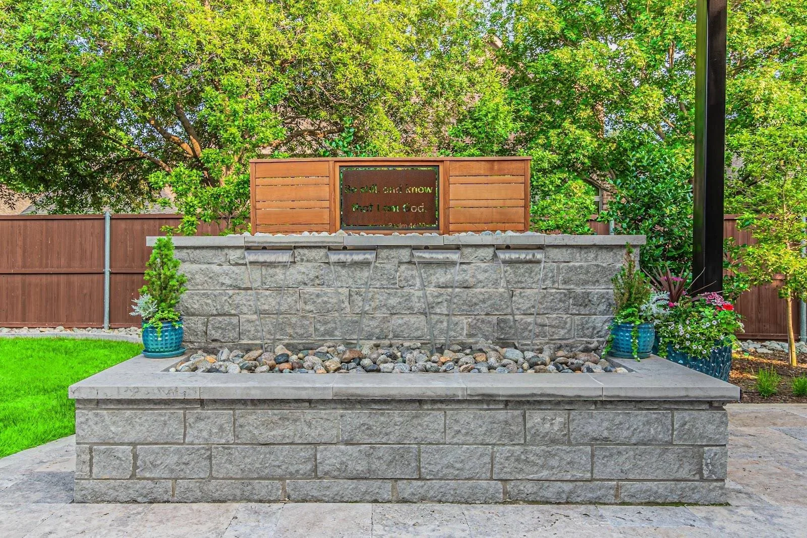 ![[OPERATOR: alt text in register per §9.9 — describe the specific planting/hardscape/architectural condition shown, e.g., "Live oak canopy over Lueders limestone terrace, Highland Park estate"]](/images/projects/drip-rock/001_hero.webp)